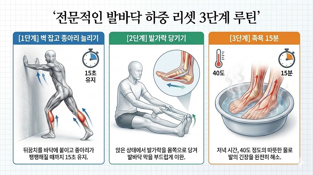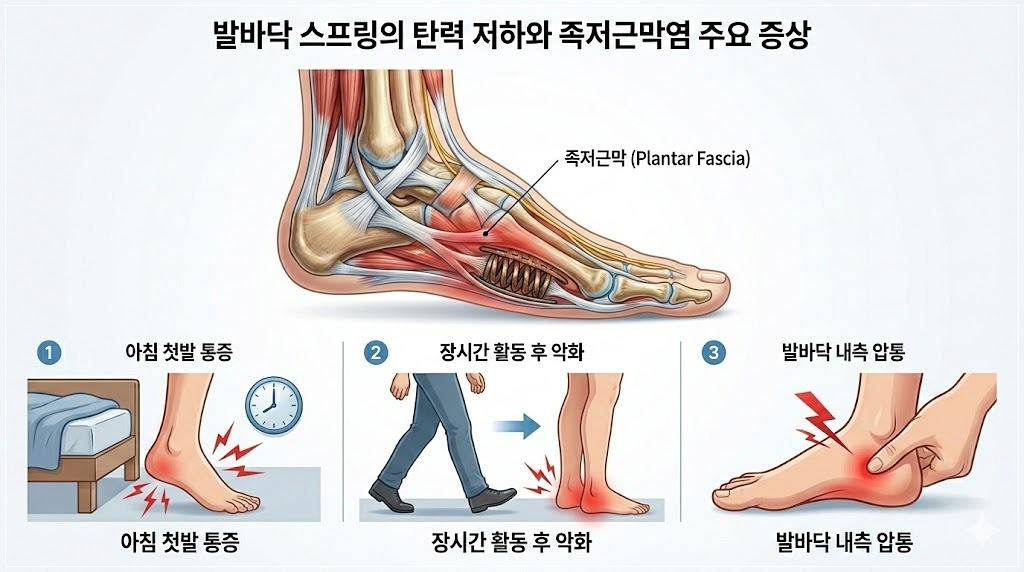 여기에 무너진 발 아치를 보강해 주는 맞춤형 인솔(깔창)을 병행하면, 일상 속에서 발바닥 스프링이 받는 과부하를 실시간으로 분산시켜 재발을 효과적으로 막을 수 있습니다.
