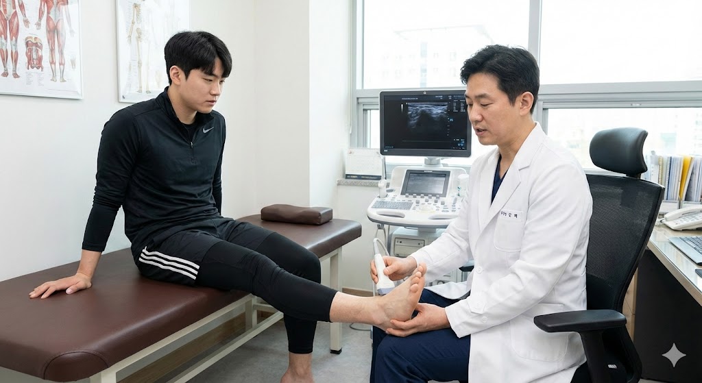 의사가 직접 환자분의 엄지발가락을 발등 쪽으로 쓱 들어 올려 근막을 활시위처럼 팽팽하게 당겨보는 이 ‘집요한 이학적 검사’는 기계적인 엑스레이보다 훨씬 더 많은 정보를 알려주죠.