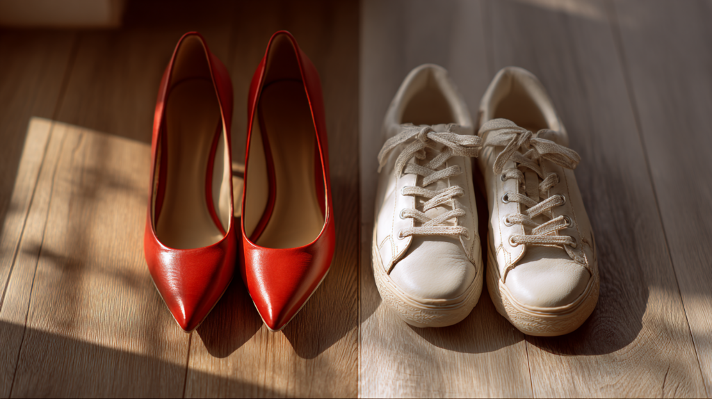 • 가장 흔한 원인은 하이힐입니다. 볼이 좁고 굽이 높으면 발 앞쪽으로 엄청난 압력이 쏠리게 되죠. 내 발 모양이 괜찮더라도 신발 때문에 지간신경종이 생길 수 있습니다.